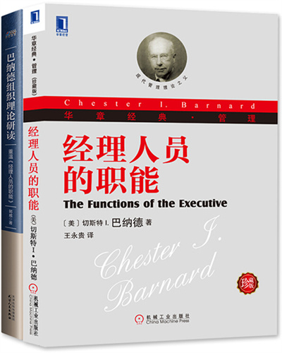 如果您想在管理学著作中寻找*体验,那么,切斯特·巴纳德1938年出版的《经理人员的职能》再适合不过了。初读此书的感觉是所有的字都认识,放在一起不知道他讲什么,一旦懂了一点他讲什么,就可入一个奇妙的,引导着我们欲罢不能。