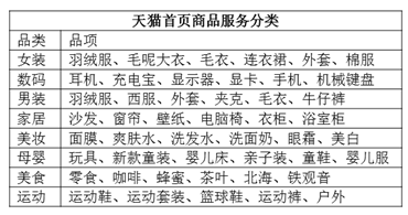 表4-5天猫首页类目