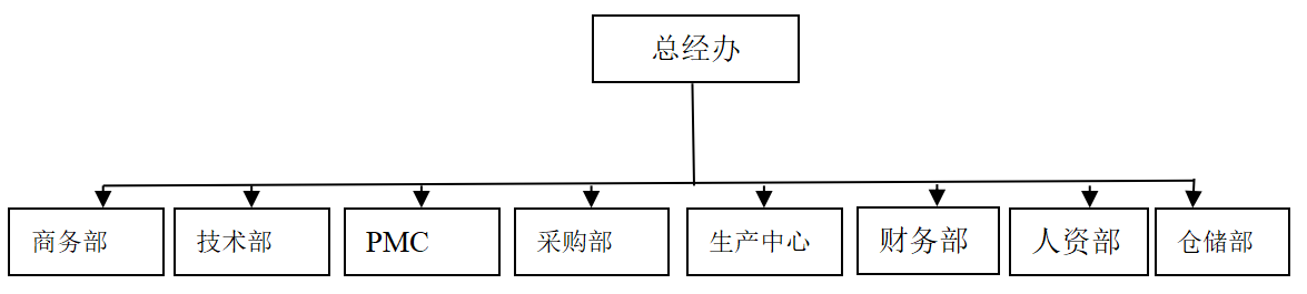 LT公司现有员工210人,其中有管理人员18人,研发技术人员占18人。公司优秀的营销及市场能力支撑着LT公司飞速发展,2016年公司年产值达1.2亿元。公司以部门负责人为关键职能,采用典型的扁平化职能组织架构,如图组织架构图所示: