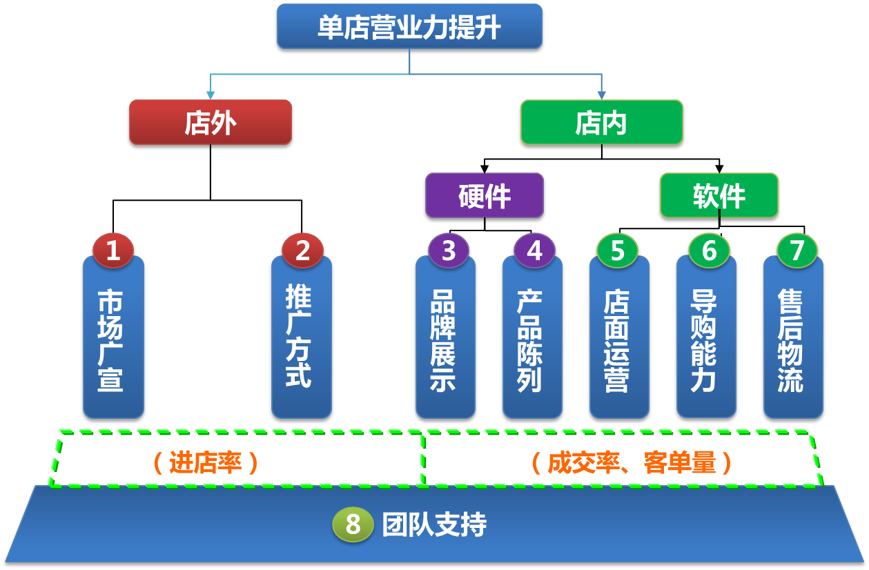 说明:终端营业公式为进店率×成交率×客单价=店铺销售额。