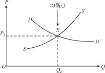向移动 , 此时 SS 9供给曲线与 DD 9 需求曲线的相交点为 E1 , 供给与需求的均衡数量上升至 Q1 , 价格下降至 P1 ;