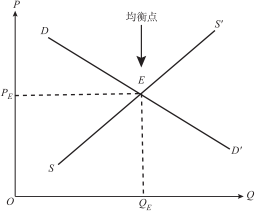 • E 表示供给曲线与需求曲线的相交点 , 也就是供给与需求相等时的均衡点 ;