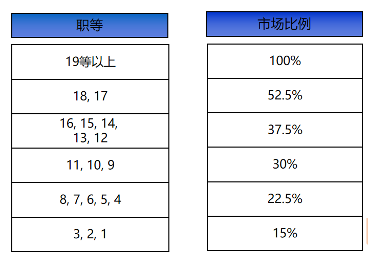 职能序列:职能类人员工作效果可阶段性量化,可借鉴同类职能的社会平均成本进行评估、主要对业务流程进行支持服务,应该采用基本工资占比较高、浮动工资较低。