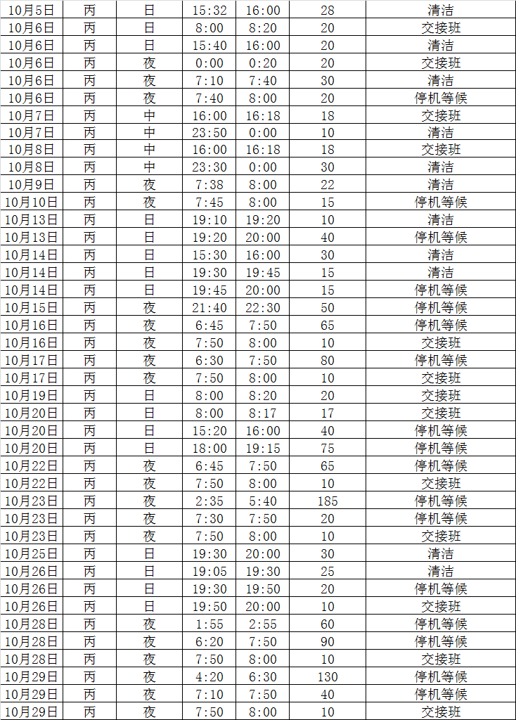 清洁时间较长,15.2min/班。