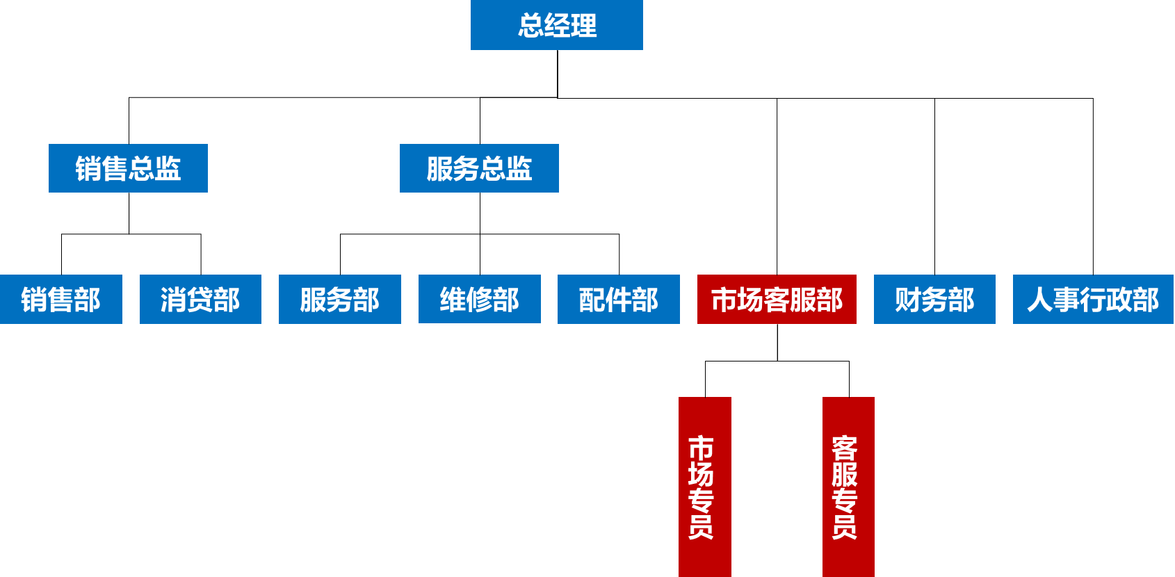 所谓建组织,就是经销商需要成立独立的市场客户部们进行客户管理工作。其中有两个要点:一是部门独立,由总经理直管;二是设置专职岗位,一般标准配置3个岗位,即市场客服部经理/主管、客服专员、市场专员(可由市场客服部经理兼职),人员编制最低要求2人以上。