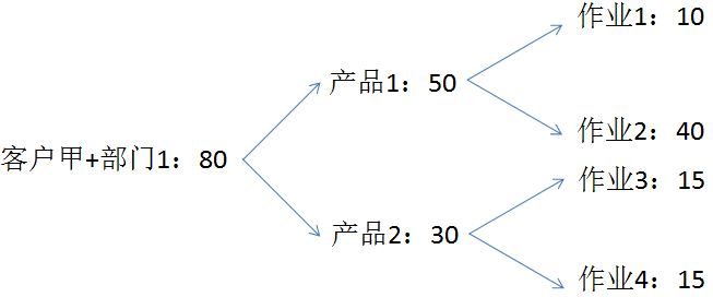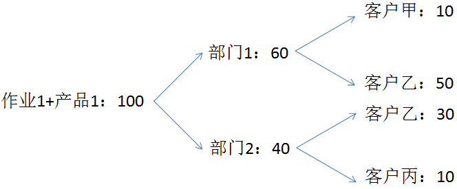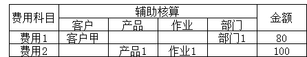 (2)归集到"客户甲+部门1"的80元,是各产品各作业的共耗费用,需向各产品各作业分摊;归集到"产品1+作业1"的100元,是各部门各客户的共耗费用,需向各部门各客户分摊。