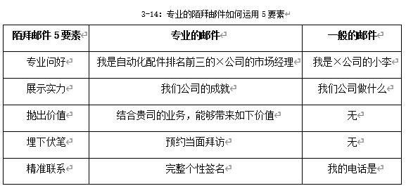 好的陌拜邮件需要满足5个要素:专业问好,展示实力,抛出价值,埋下伏笔,精准联系。站在收件人的角度,你是谁不重要,你代表谁才重要;你的公司做什么不重要,在行业或者领域做到了什么成就才重要;你给我推荐什么业务不重要,你能给我带来什么价值才重要。