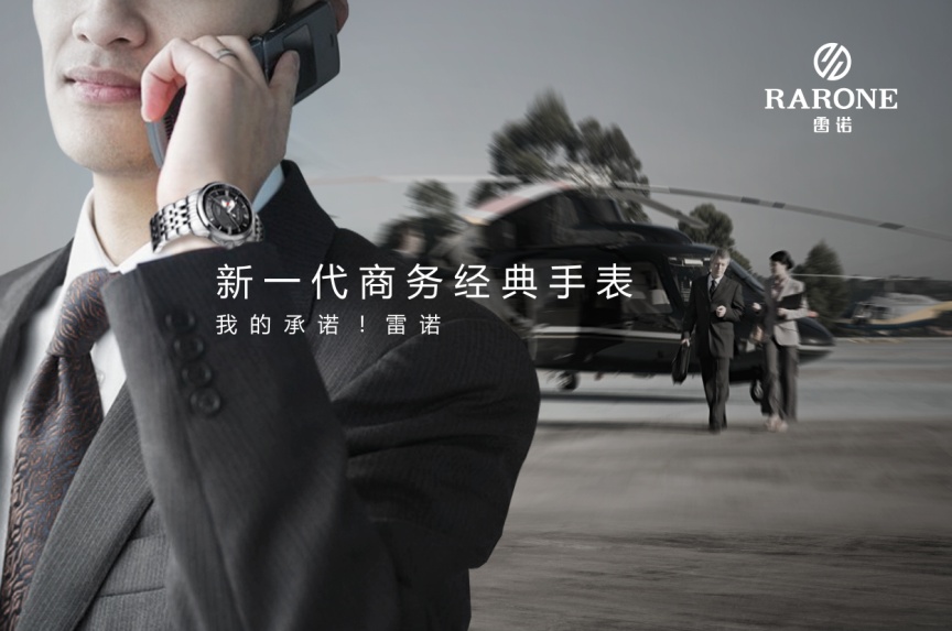 在“商务”定位下的雷诺,品牌核心价值既要体现商务用品的本质特点,又要有相应的品牌资源进行支撑,同时要符合未来的发展趋势。定位为“商务”手表的雷诺,核心价值应与“商业文明”相联系。现代商业文明是以契约精神为核心,雷诺,“雷厉风行,一诺千金”,体现的是商业社会当中的高效率和诚信精神。