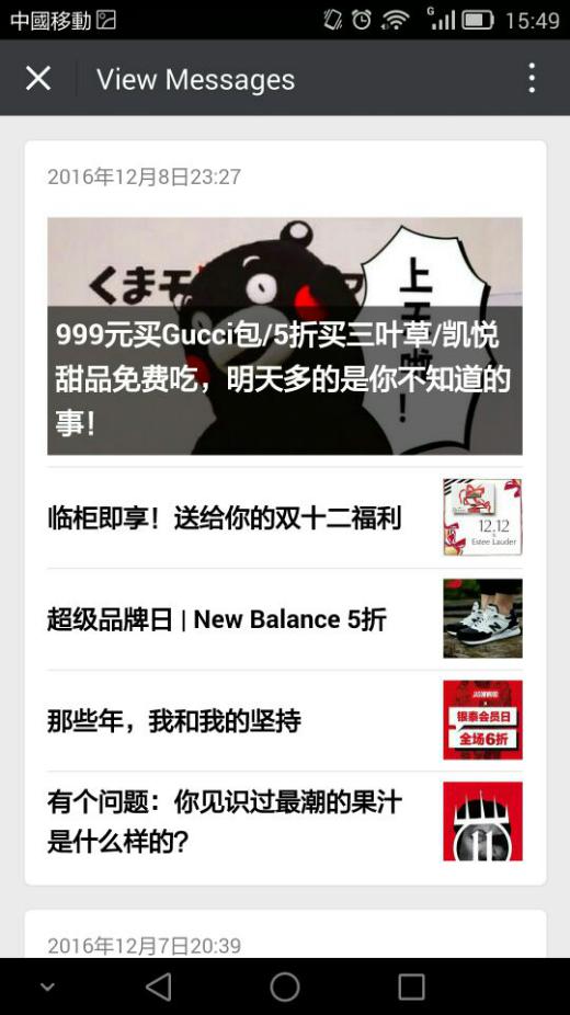 除了上述将自媒体作为“媒体平台”进行运营外,微信最核心的要务就是与场内的促销、PR活动、特卖活动等相结合。进行促销、特卖、PR活动时,建议选择首先“能打动自己”的促销、活动与特卖资源,如果活动的品牌、力度、有趣度等价值连自己都觉得不行,就谈不上对顾客产生影响,让其接受了。