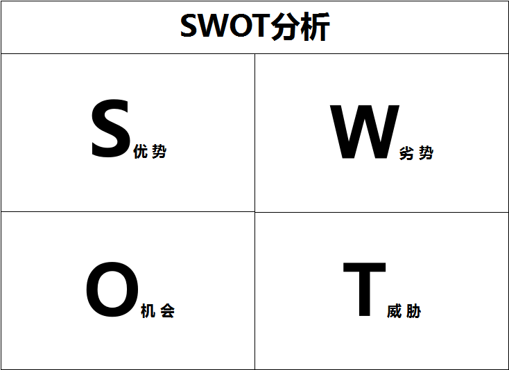 我们知道SWOT分析是企业战略规划的基本工具,一般会分析四个点:机会、威胁、优势及劣势,如图3-4所示。