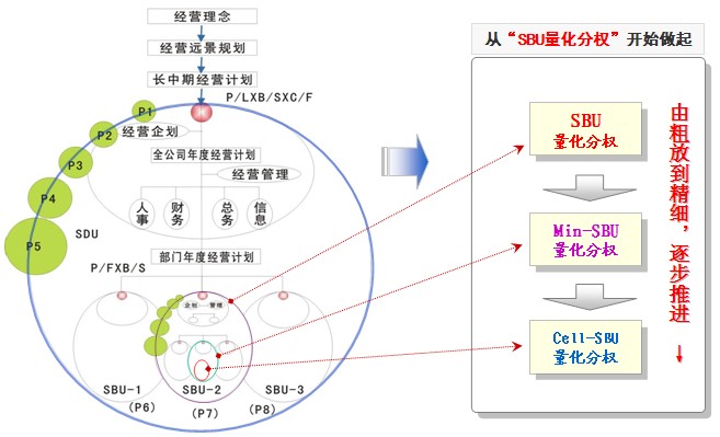 随着企业管理水平的不断提升,以及运用“量化分权”的工具的水平提高,逐步实现大组织做小、划小经营核算单位,管理去中心化,从中央集权变成小作战单位,将经营权逐步下放到业务第一线,彻底释放每一位员工的智慧,让每一位员工成为主角,主动参与经营,打造激情四射的集体,最终达到依靠全体智慧和努力完成企业经营目标,实现企业的飞速发展。