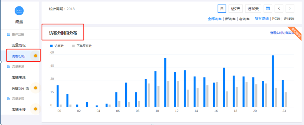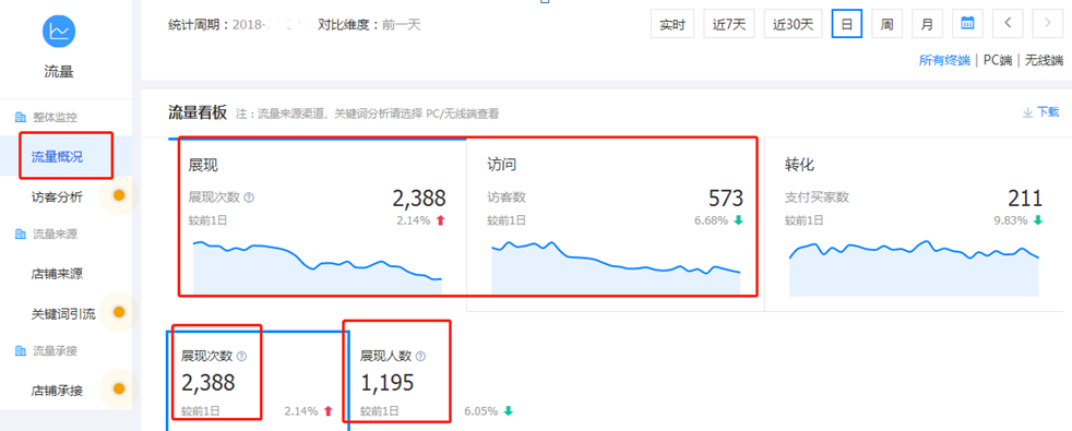(2)流量。流量是商家非常关心的地方,都想知道自己的流量从哪来?哪些地方做得不足?需要改善什么?我们首先要看流量概况,这里给你的是整个店铺数据。另外还有访客分析、店铺来源、关键词引流、店铺承接等。除了流量概况还必须掌控访客分析,这涉及用网销宝的效果。如图10-8、10-9、10-10所示。