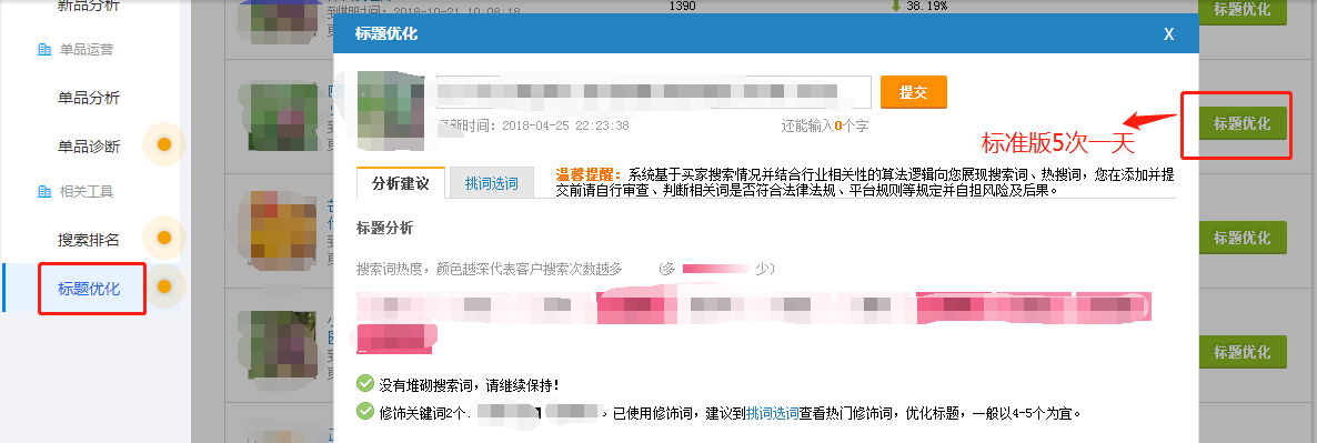 单品诊断每天有5次修改标题的机会,一定要好好利用。如图10-17所示。