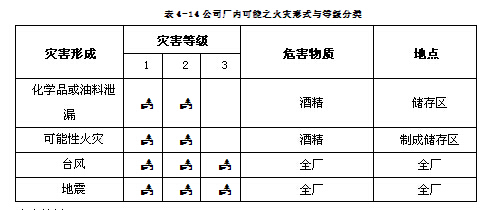 表4-14公司厂内可能之火灾形式与等级分类