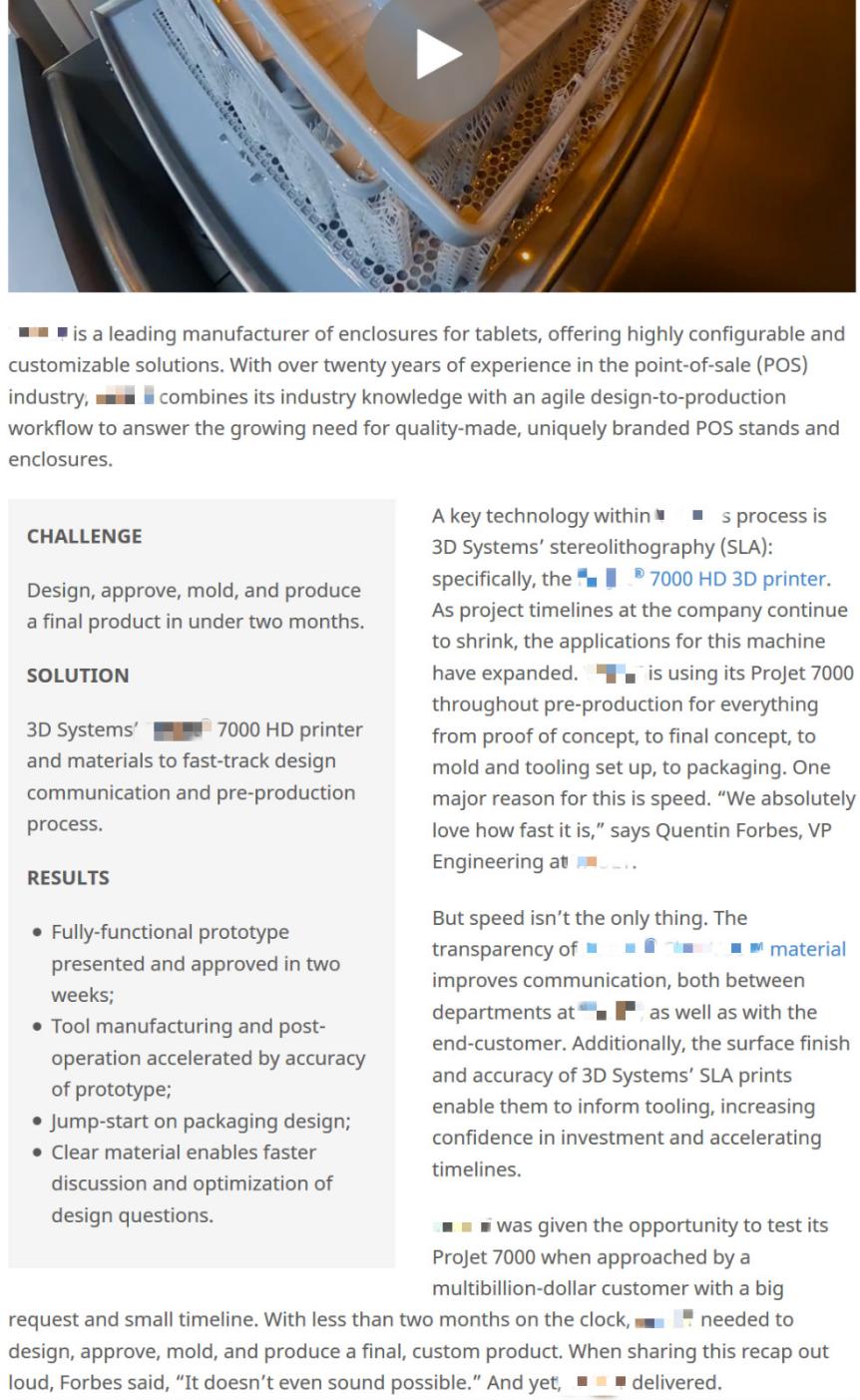 图4-18某3D打印公司网站的客户案例参考1(仅部分截图)
