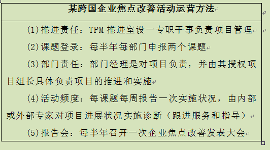 表4-14是某跨国企业焦点改善活动运营方法。