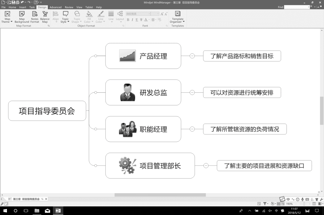 在某企业的研发改进过程中,改进者建立了一个名为“项目指导委员会”的跨部门团队,主要包括产品管理和资源管理两类责任主体。综合来看,项目指导委员会既了解工作目标和优先次序,同时也清楚当前资源负荷的具体情况,可以据此做出资源调配。如图3-47所示。