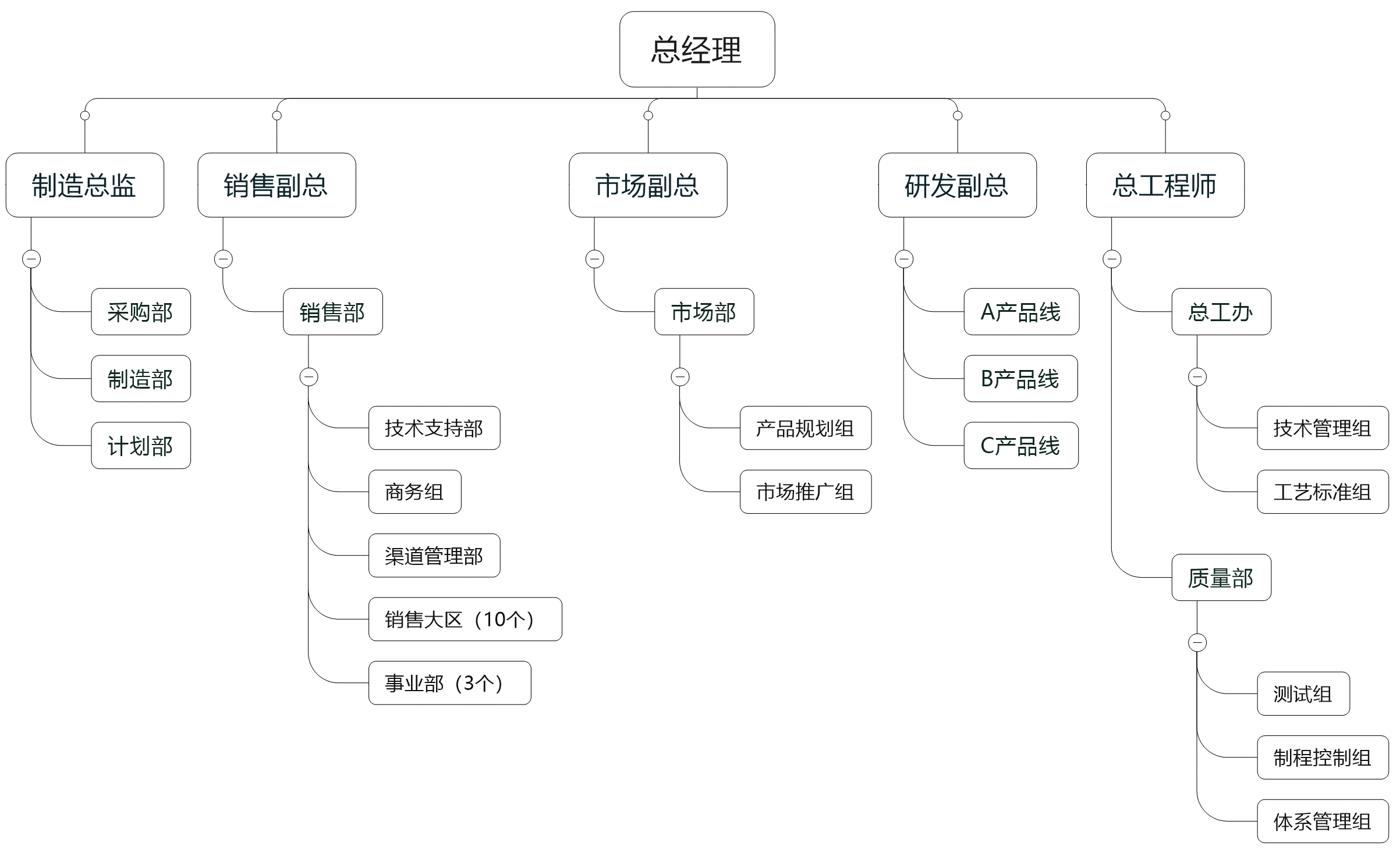 总工程师管辖的两个部门(质量部、总工办)起到了监督与控制作用,但与制造、研发部门脱节比较严重;