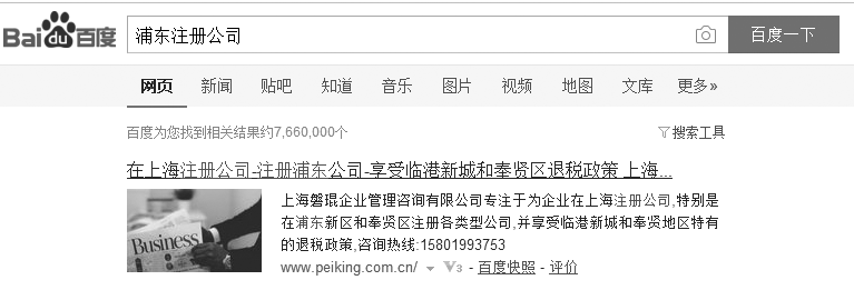图8-14 在百度上搜索“浦东注册公司”的结果