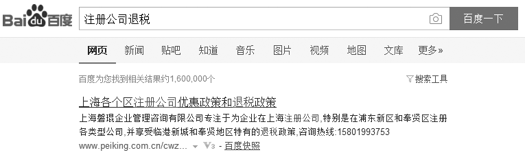 图8-16 在百度上搜索“注册公司退税”的结果