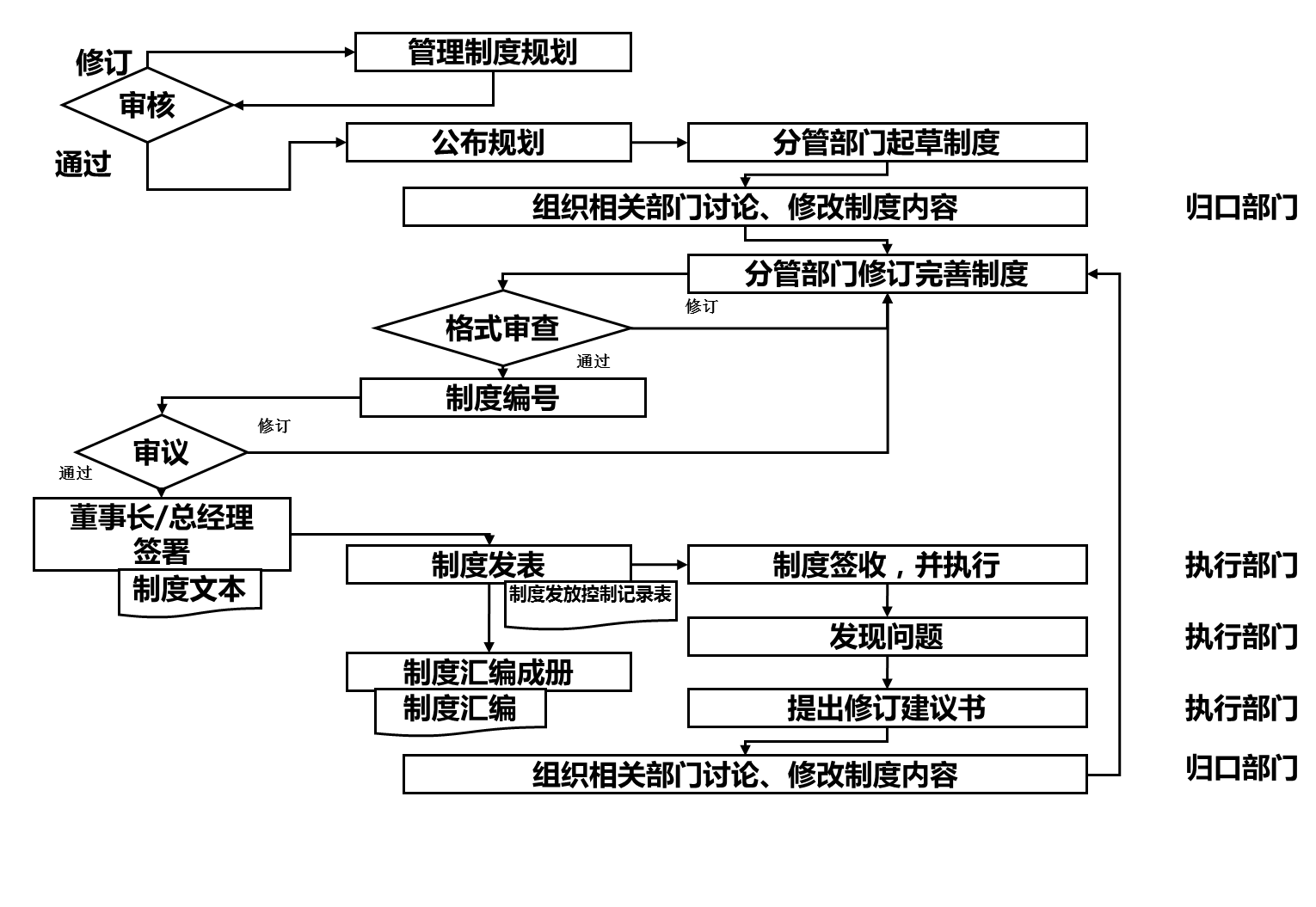 建议1:出台体系管理规范流程,对制度建设基本要求、原则、方法、分类、执行、监督、考核等进行规范: