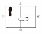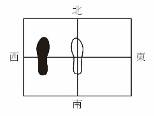 3.上半身保持不变,左脚向正北直线“荡”出一步,左脚跟点地,重心仍然在右脚,左脚成虚脚。