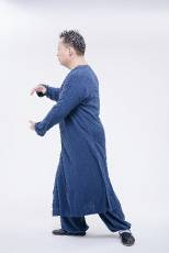 2.上半身维持不动,左脚涌泉向前踩出,重心逐渐移交给右脚,直到右脚全实、左脚全虚。