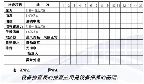 例1:空压机运行检查表如表1-4所示。