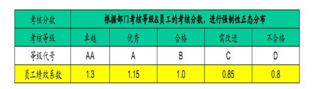 绩效系数 | 1.2 | 1.0 | 0.9 | 0.8 | 0.6 | 0.4 | 0 |