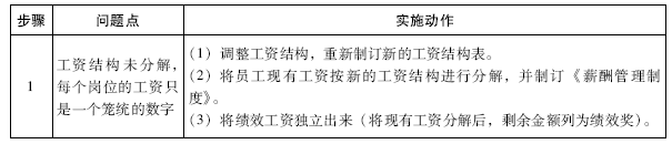 :变革后,针对工资结构未分解的问题,我们就重新制订新的工资结构。新的工资结构表如表2-1所示。