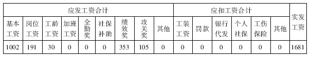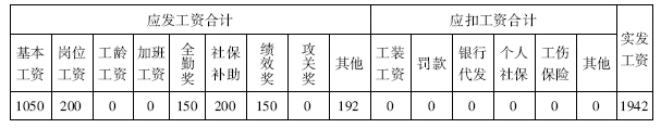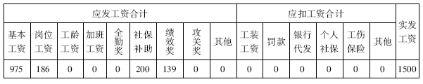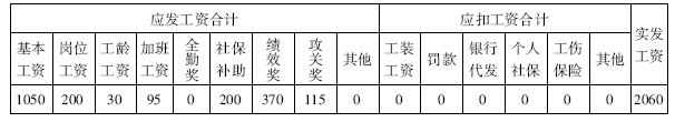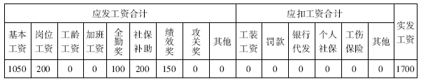 表2-11 XX出勤为28天的工资计算表