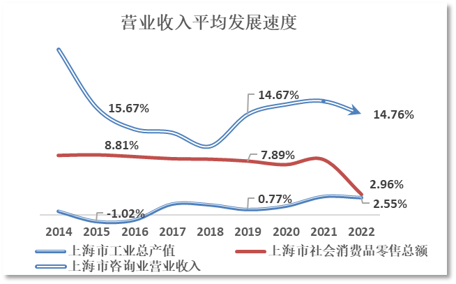 2022上海市咨询业经济效益受疫情影响,出现负增长。