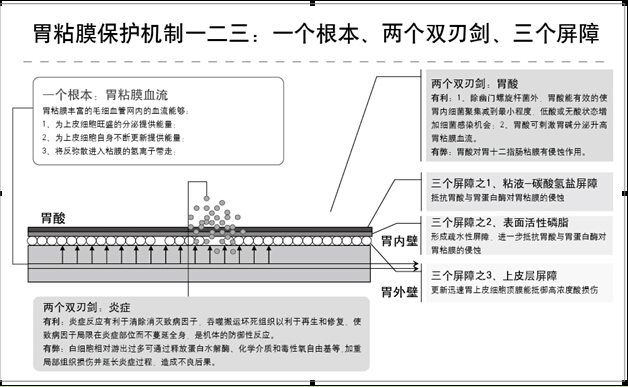 4.目前临床上的胃病治疗中制酸剂(H2受体拮抗剂、质子泵抑制剂等)、黏膜保护剂(铝剂、铋剂等)、抗生素等横行天下,每一类的产品随便就能列举几十个,“增强胃粘膜血流的”这个机制整体上不被重视,医生根本就想不起来,不是不承认,而是压根不考虑;