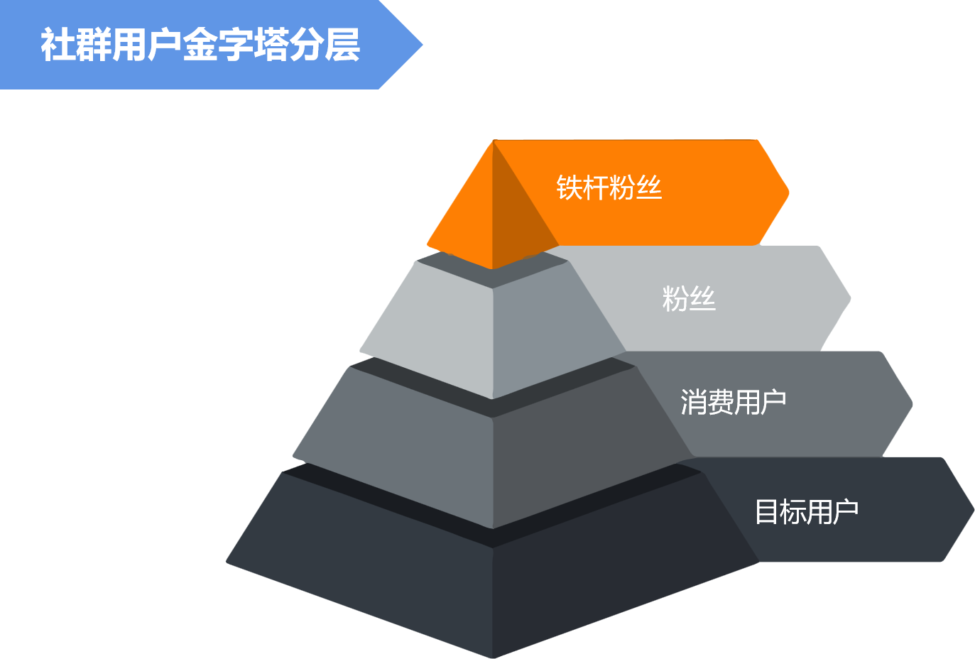 最底层的就是目标用户,接着往上分别是消费用户、粉丝、铁杆粉丝。