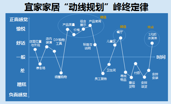宜家的购物路线也是按照“峰终定律”设计的。虽然它有一些不好的体验,比如“地形”复杂,哪怕只买一件家具也需要走完整个商场;比如店员很少,找不到帮助;比如要自己从货架上搬货物,要排长队结账等等。但是它的峰终体验是好的,它的“峰”就是过程中的小惊喜,比如便宜又好用的挂钟,好看的羊毛毯以及著名的瑞典肉丸;它的“终”是什么呢?就是出口处1元钱的冰淇淋!