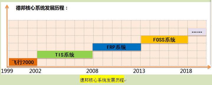 物流行业是IT高依赖行业,IT水平的高低直接影响企业竞争能力。德邦在2000年,在行业内首先研发使用了飞行-2000信息系统。此后数年,TIS系统、ERP系统相继接力,支撑了德邦数十年的快速发展。