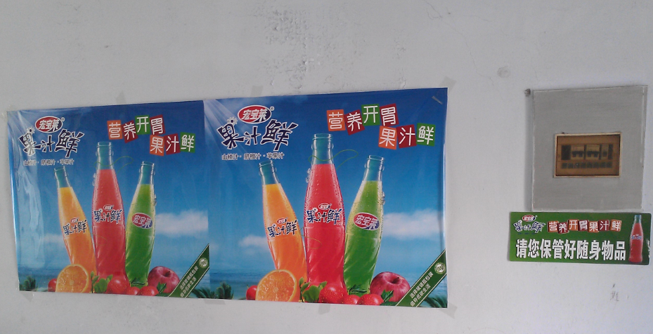 终端生动化,执行力本质上比创意更重要。宏宝莱的终端生动化,从物料设计上看比一般饮料企业显然用心很多,却也没有多少新奇创新。然而,当在吉林地区几乎所有的C、D类餐饮店里都能看得下面的终端陈列与生动化物料的时候,任何人都无法不对宏宝莱这个品牌刮目相看。终端生动化具体如图6-3、图6-4、图6-5、图6-6、图6-7、图6-8和图6-9所示。