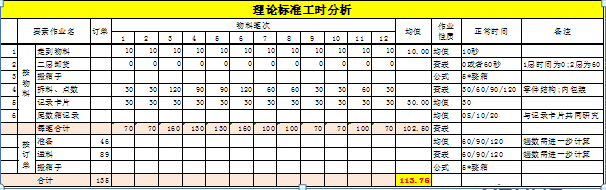 表9-6 理论标准工时分析