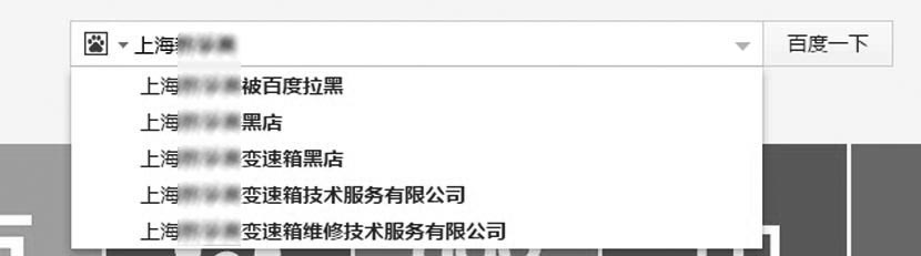 我试着用抹黑的相关搜索词“上海变速箱XFM黑店”再次搜索,底部的相关搜索里不但有XFM,还有其他同行,如山全、滕骅等。看来这个竞争对手不止针对一家恶意攻击,其他同行也遭受到同样的攻击,如图8-7所示。