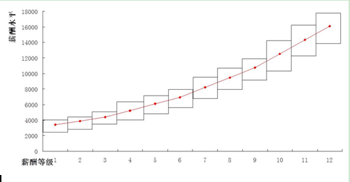 (2)薪级:每一个薪等均为一个区间,薪级数量表示区间的长度,这个区间决定了员工薪酬调整的范围。