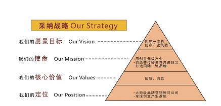 采纳基于为中国企业提供品牌营销战略服务从而打造国际一流品牌的使命感,驱动着我们坚持“智慧、创意”的核心价值,在广大企业心智中夯实“大师级品牌营销顾问公司”的定位,致力于成为“世界一流的创业产业集团”!