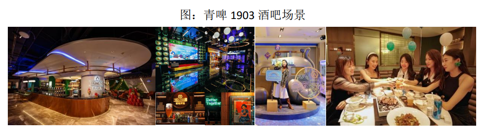 青啤 TSINGTAO 1903 酒吧(以下简称青啤 1903 酒吧),首创行业啤酒消费新模式,致力于打造全方位的沉浸式体验及社交平台。它是青啤从原有的“生产要素”向“软要素”,尤其是“端到端”(消费者需求端-消费者感知端)转型深化的主战场;是青啤推动“魅力感知质量模式”,打造沉浸式、场景式消费者体验的新高地,有着举足轻重的战略意义。