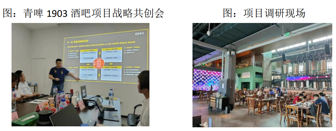 ②项目启动及战略共创:这个环节很重要,通过项目启动会、培训导入会、战略共创会等环节,对青啤 1903 酒吧的高层导入经营战略陪跑理念和核心知识模型体系,推动双方战略目标共识。