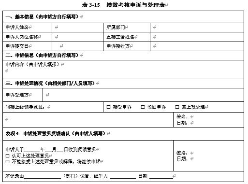表3-15 绩效考核申诉与处理表