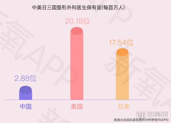 与庞大的年轻消费者基础以及医美消费观念转变相比,在我国,整形外科医生紧缺,供给侧成职业蓝海。每百万人保有的整形外科医生数量为2.88位,远低于美国的20.88位和日本的17.54位。整形外科医生紧缺,成为职业蓝海。