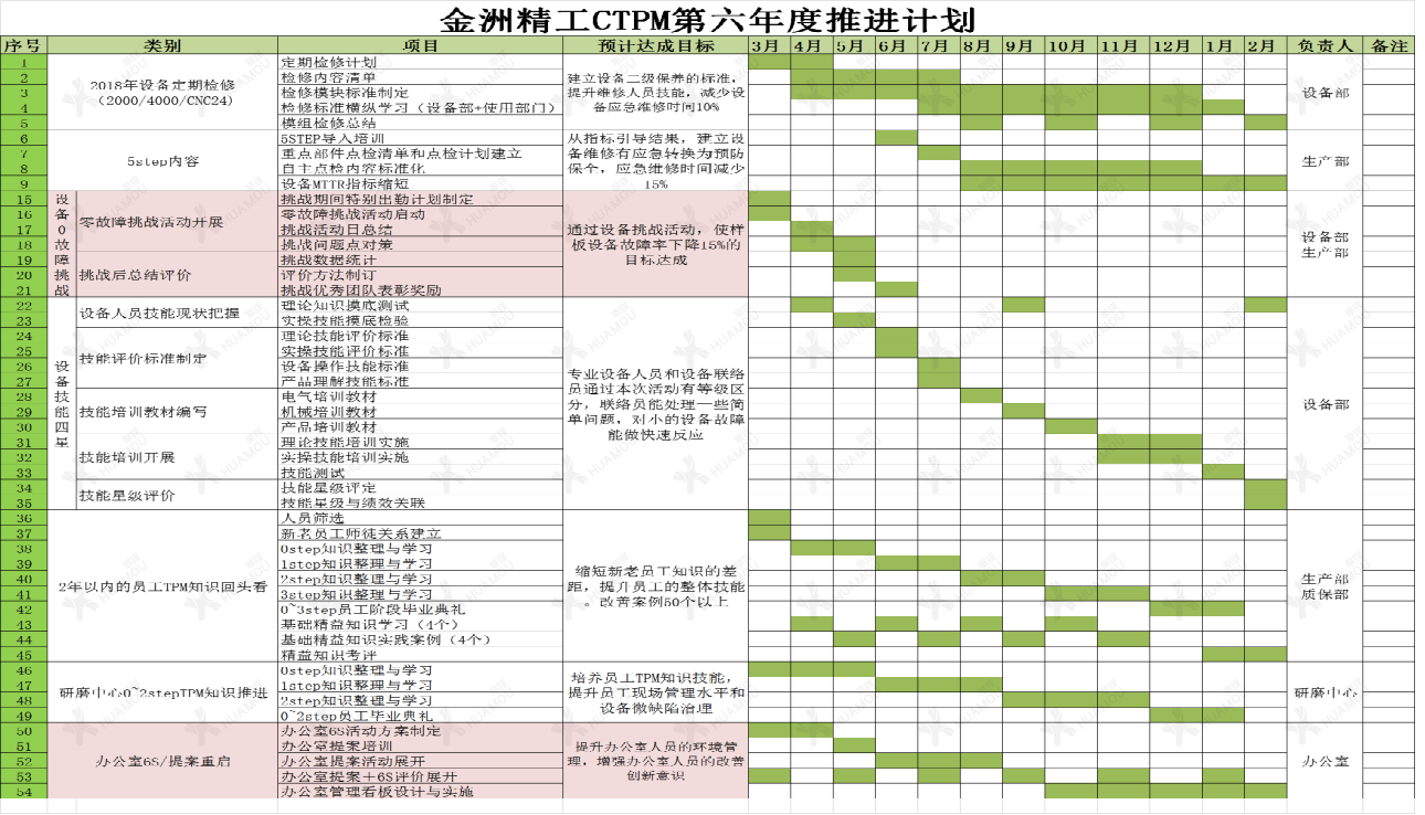 目的:形成一套适合金洲精工实际的精益管理运作模式,通过模式中的逻辑化精益模块分项实施,打造出专业的金洲精工精益管理团队,持续提升企业竞争力。