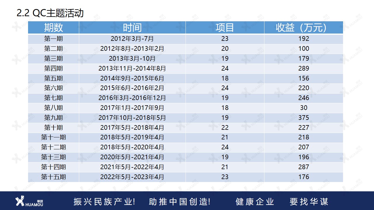 通过这些数字可以看到:一是咨询团队采用了符合公司特点的辅导方式,善于启蒙、引导,方法得当、有效;二是各级管理人员团队发现问题的能力得到了提升、组织开展工作的能力得到了提高;三是通过了“红牌作战”、“小组活动”、“两源改善”、“提案活动”、“主题活动”等形式,岗位职工敏锐捕捉问题、自主解决问题的能力不断提高,全员参与的意识不断增强。