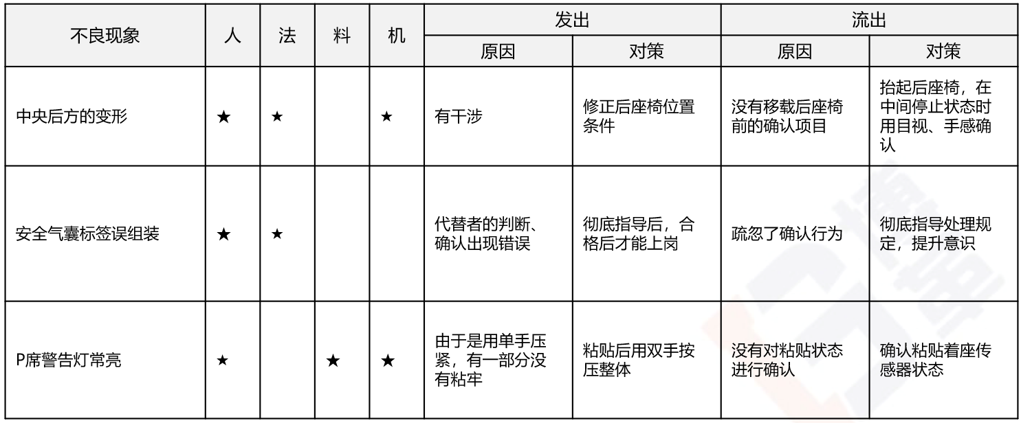 2 整理以往不良的对策内容,并加入动作要素中。