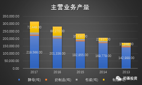 公司生产酵母需建设厂房、购置机器设备,前期投入较大。因此,报表中固定资产和在建工程占比重,近五年占总资产金额约60%。在读财报系列中已经分析,固定资产和在建工程代表现在及未来产能状况,扩大产能提升产量,因此分析产量增速主要在于分析现有及将来产能情况。
