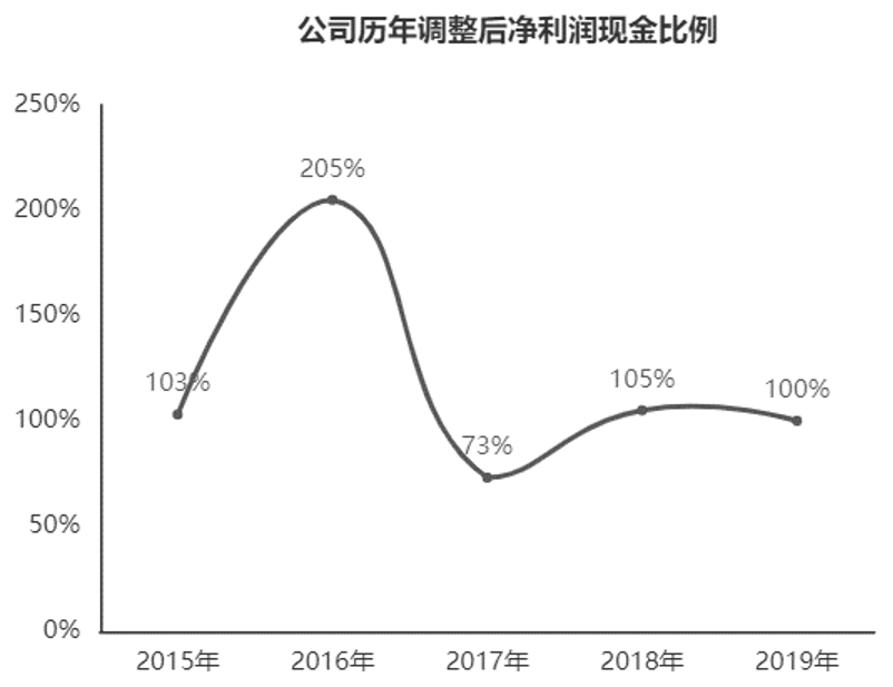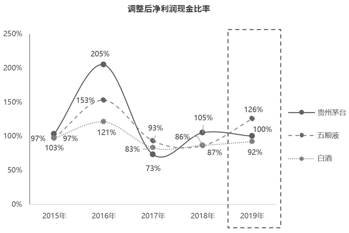 图8-14 贵州茅台2015—2019年调整后净利润现金比率